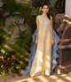 Mesmerize in Meraz! This breathtaking ice blue anarkali commands attention with its exquisite opulence. Adorned with hand-embellished intricacies, it effortlessly blends modern glamour with timeless elegance. Perfect for those who embrace luxury and style, this ensemble promises to make every occasion unforgettable."